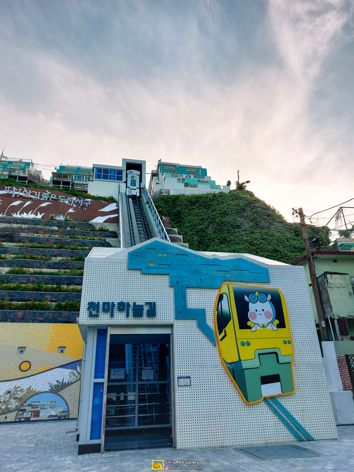 천마산 중턱에.... 알록달록한 건물들.....