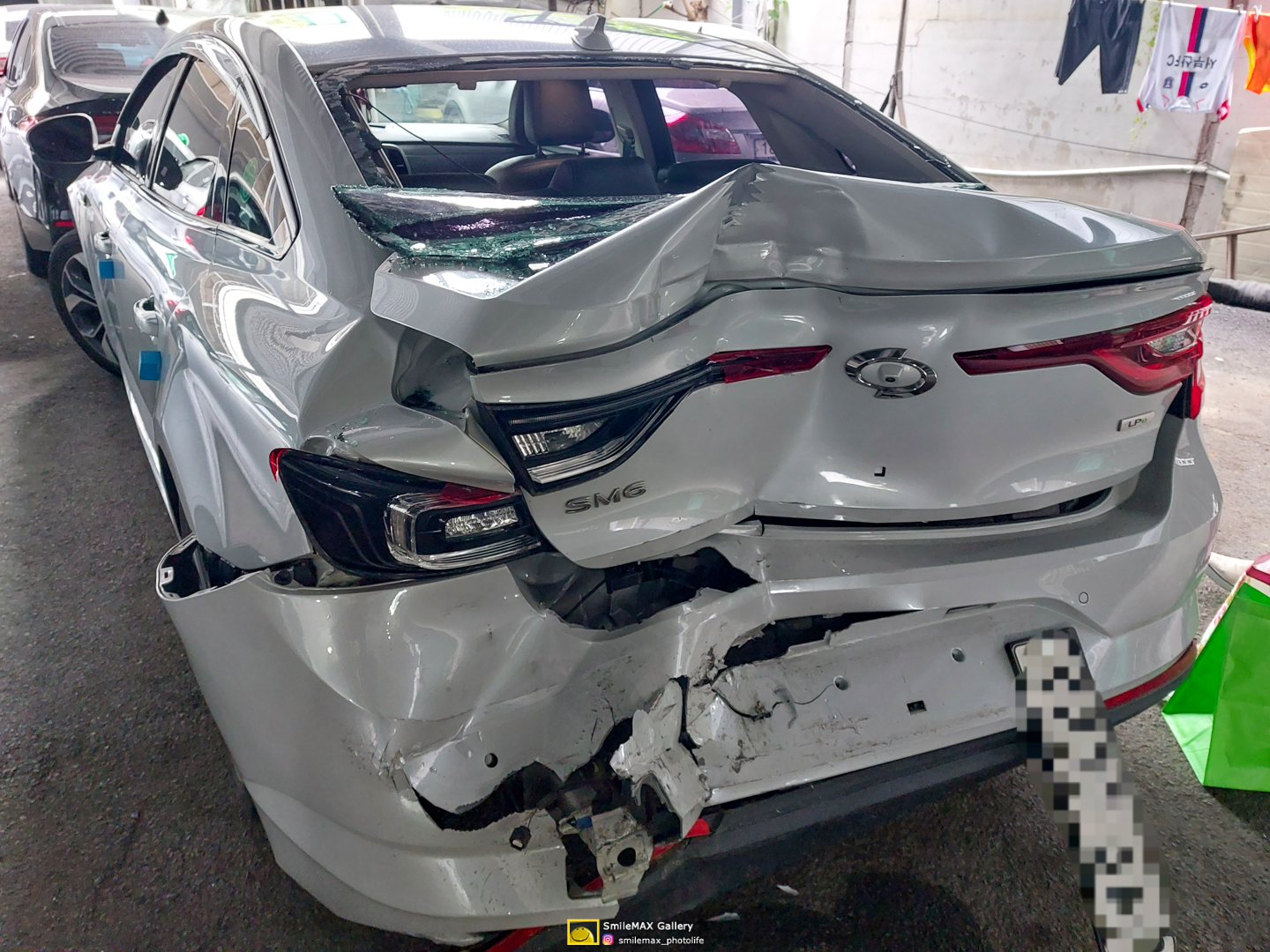 파손된 차량의 모습입니다.
