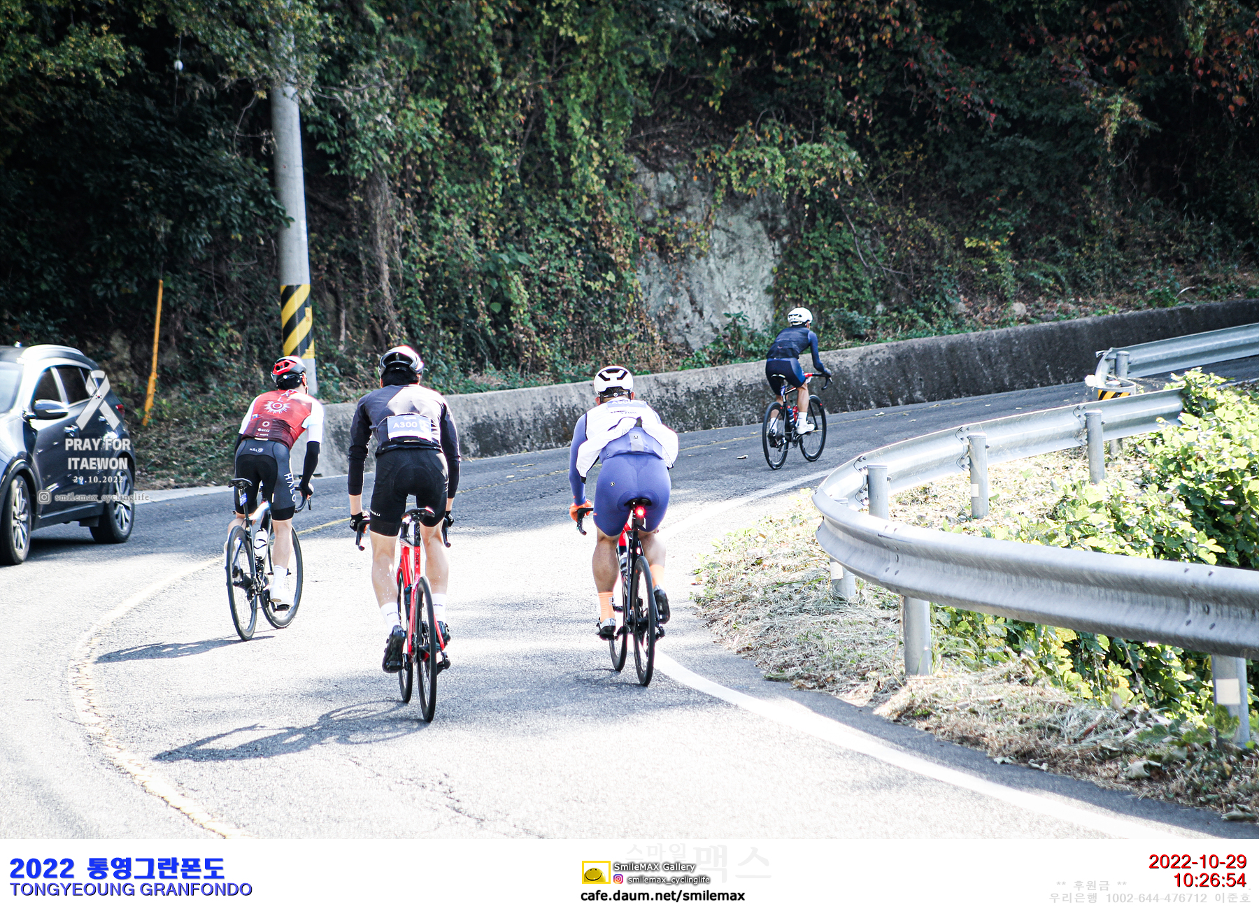 | * 분명(?) 찍혔다고 판단했음에도 없을 경우 아래와 같습니다. - '다운힐'에서 한손 또는 두손을 들어 타인에게 위험한 포즈를 취한 경우. - 팩(뭉쳐서)으로 빠르게 지나가서 촬영 타이밍을 놓친 경우. - 카메라 포커스(AF)가 심하게 틀어진 경우. - 카메라 기능 고장(메모리 오류 등)이 발생한 경우. * SNS 및 카페에 업로드 및 사진 재 편집은 가능하나 해시 태그 나 출처 는 표기해 주세요~ - #스마일맥스 or #SmileMAX - 지인 사진을 대신 전달 할 경우 잊지 말고 전달해 주세요~ * 원본 제공은 현재 계획된 것이 없습니다. * 사진에 대한 열정과 개인 사비로 진행된 대회 출사입니다. 무리한 요구(요청) 사항이나 비판 등은 자제 부탁드립니다. (후원금은 감사히 받겠습니다~) >>후원금<< * 개인 사생활 문제로 사진 삭제 요청 시 - 게시물 번호와 함께 몇번째 사진(파일명) 혹은 사진속 특징(배번표, 의류(자전거) 색상 및 브랜드)을 댓글, 방명록 혹은 메일(smilemax@daum.net)로 알려주시면 삭제 처리하겠습니다. |